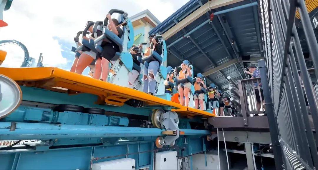 车体采用每2人一横排,上半身的平安安拆能够正在列车行驶中轻细上下活动,完满模仿了冲浪时的波动体感。轨道上插手了超侧倾弯、翻腾元素,颇为斗胆。